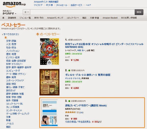 "Gyakutenryoku" at the 3rd place on Amazon's bestseller book chart