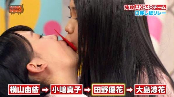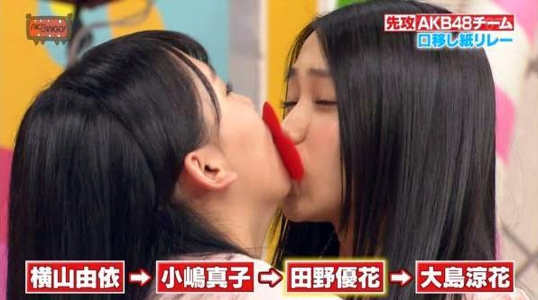 At AKBINGO! Episode at 22 October, 48 group members have some very exciting scene for AKB48 fans, it includes HKT48 Nakomiku kiss Watanabe Mayu, and a very exciting mini game.