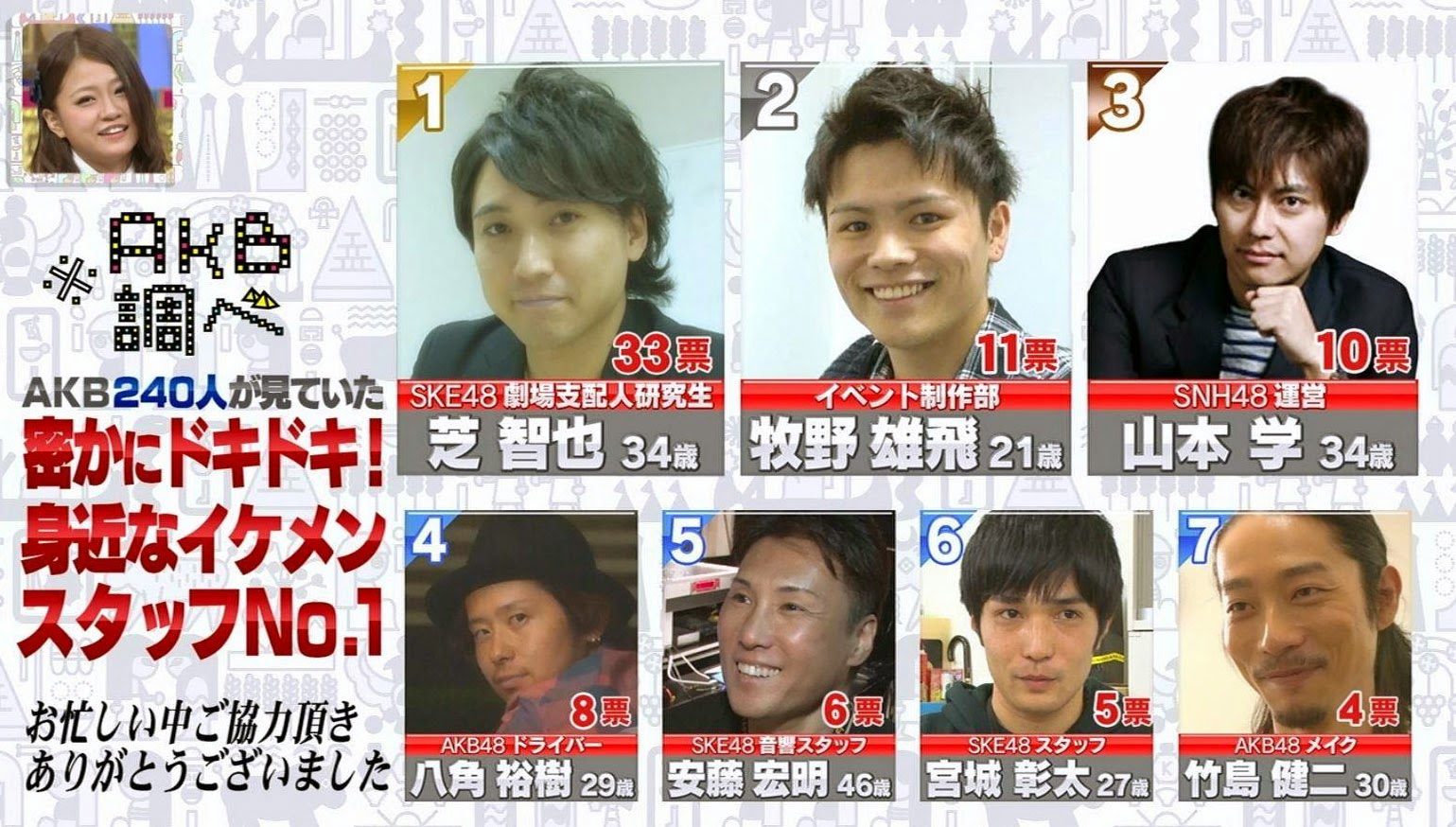 The most handsome 48 group has been voted by 48 group members, the most handsome staff is Kenkyuusei SKE48 Theater Manager Shiba Tomoya.