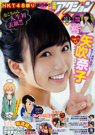 HKT48 member Yabuki Nako (矢吹奈子) being cover girl of manga magazine "Manga Action" (1 December issue), this issue will come with her poster, the magazine has been released at 17 November 2015.