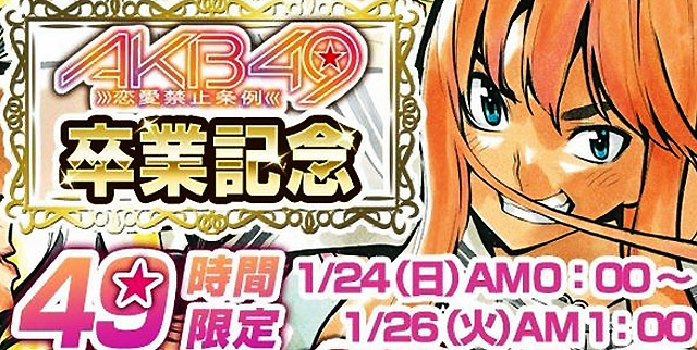 AKB49: Ren'ai Kinshi Jourei's all 262 chapters are available for free from 24 January 2016 (0:00 AM JST) to 26 January 2016 (1:00 AM JST).