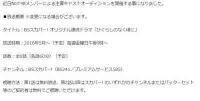 NGT48 official site has updated the details of their upcoming TV drama "When They Cry - Higurashi" (Romaji: Higurashi no Naku Koro ni, Japanese: ひぐらしのなく頃に).