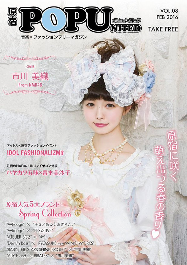 NMB48 Team BII member Ichikawa Miori (市川美織) being cover girl of free music magazine POPunited (vol. 08), the magazine has been released at 13 February 2016.