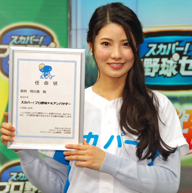 Former AKB48 member Kuramochi Asuka (倉持明日香) is appointed as PR Ambassador of Sky PerfecTV! Professional Baseball at 6 February 2016.