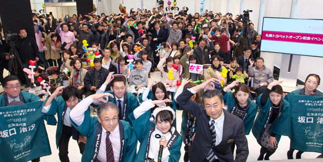 AKB48 Team 8 member Sakaguchi Nagisa (坂口渚沙) participated Sapporo Toyota Shop Tsukisamu branch open event on 14 February 2016, her official cheer group was formed in the event in the event.