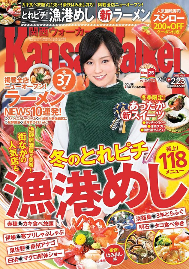 NMB48 member Yamamoto Sayaka (山本彩) wil be cover girl of Japanese travel magazine "Kansai Walker" (2016 no. 4), the magazine will be released at 9 February 2016.