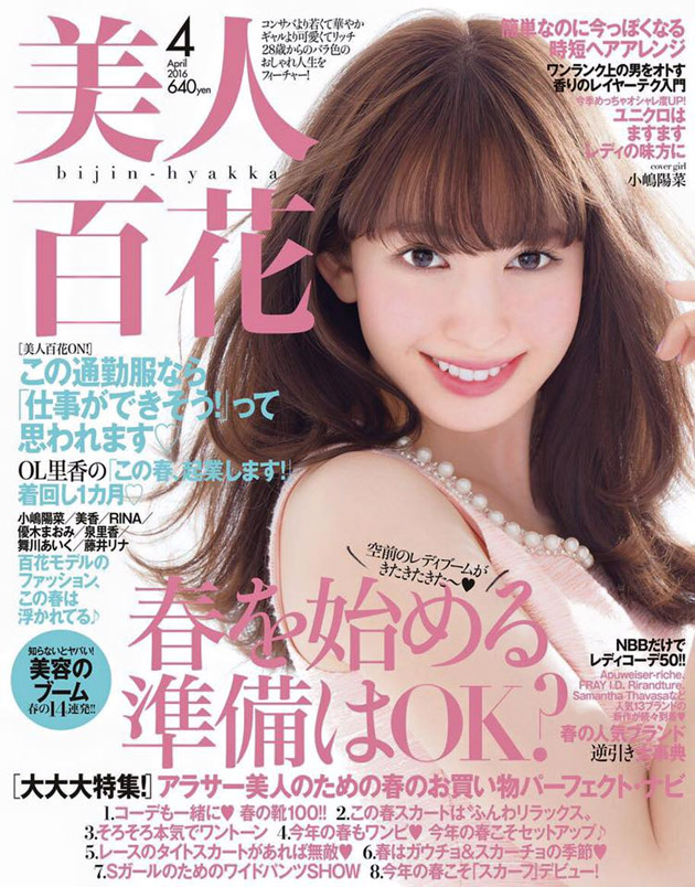AKB48 member Kojima Haruna (小嶋陽菜) being cover girl of magazine Bijin Hyakka (2016 April issue), the magazine has been released at 12 March 2016.