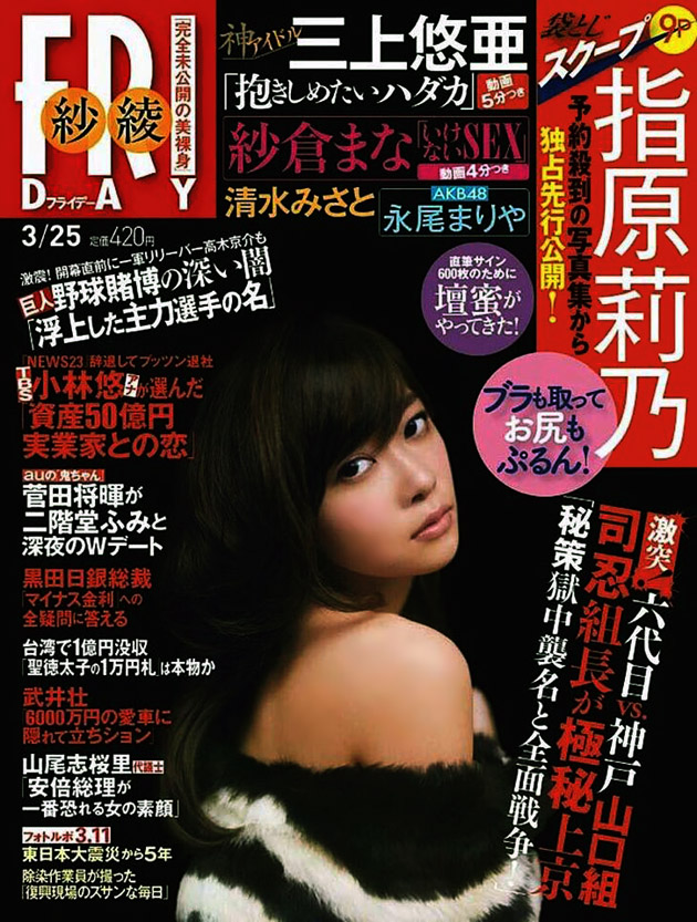 HKT48 member Sashihara Rino (指原莉乃) being cover girl of magazine "FRIDAY" (25 March 2016 issue), the magazine has been released at 11 March 2016.