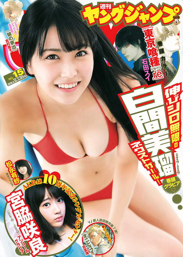 NMB48 member Shiroma Miru (白間美瑠) being cover girl of Japanese manga magazine "YOUNG JUMP" (No. 1768 issue), the magazine has been released at 10 March 2016.